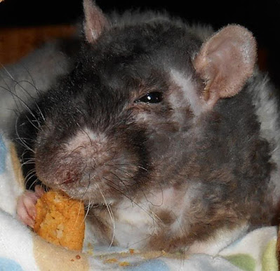 Some of my newer followers have asked me if I have rats because of the Happy Raturday posts. So I thought I would answer you. I don't have rats right now but I have in the past. I have a dog right now and when I had rats I would let them out to crawl all over the place and can't do that with Falcor around. So maybe sometime in the future I'll have rats again. I thought I would share some of the pictures of the rats I have had. This was Patches.